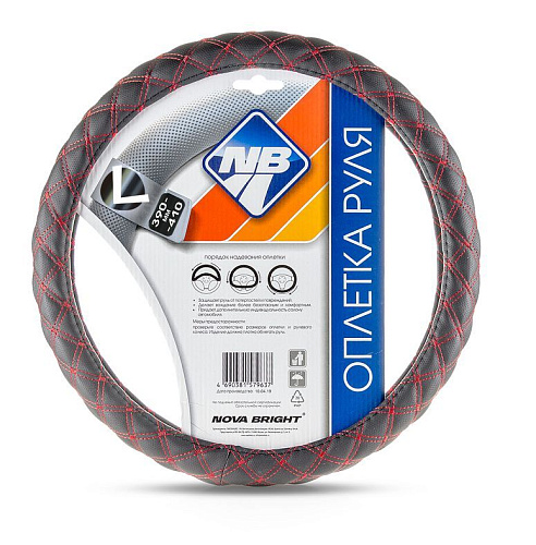 NOVA BRIGHT (L) экокожа, черная с прострочкой красными ромбиками 47677 Оплетка на руль
