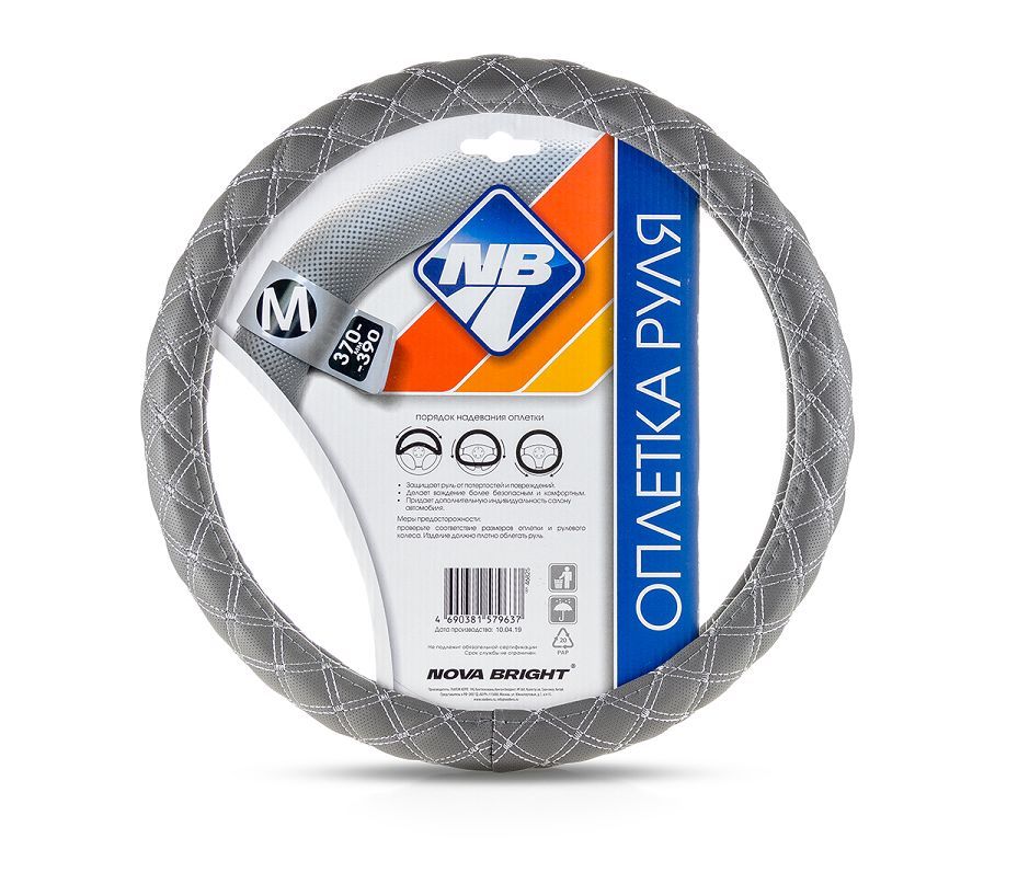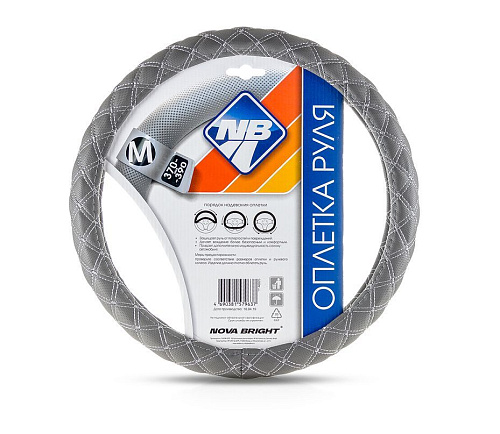 NOVA BRIGHT (M) экокожа, серая с прострочкой ромбиками 47364 Оплетка на руль