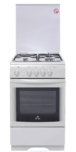 Габариты 850*500*600 Вес, кг - 38 Объём духовки 54 л. Основные характеристики варочной поверхности: 3 газовые конфорки 1,0/1,7/3,0 кВт 1 электрическая конфорка 1,5 кВт Основные характеристики духового шкафа: Электрическая духовка Нижний ТЭН - 1,2 кВт Верхний ТЭН - 0,8 кВт Терморегулятор Освещение Комплектация: Большой противень Малый противень Решётка для жарки Эмалированная решётка Стеклянная крышка рабочего стола Хозяйственный отсек Техническое описание: Цвет - белый