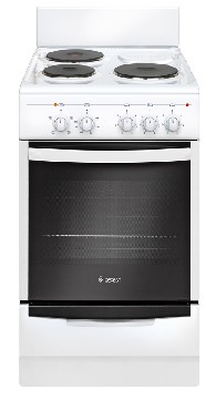 Габариты: 50х58,5х85см. 3 электроконфорки. Полезный обьем духовки: 52 л. Подсветка духовки одинарная. Штампованные направляющие духовки. Регулировочные ножки. Белый эмалированный фасад. Щиток.