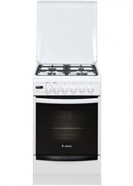Размеры 50x58,5x85см. Полезный объем духовки 52л. Встроенный в ручки управления электрозжиг горелок стола. Электрогриль. Турбо-гриль. Шашлычница. Таймер электронный. Газ-контроль горелок стола. Вертел с электроприводом. Подсветка духовки одинарная. Белый.