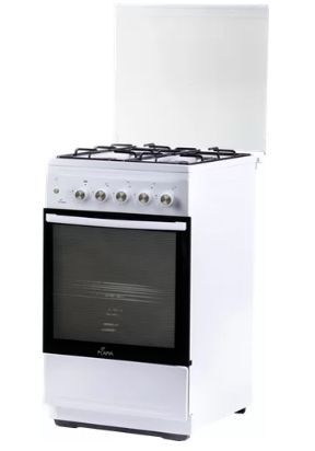 Газовая плита. Материал рабочей поверхности эмалированная сталь. Материал решетки сталь. Управление механическое. Класс энергопотребления C. Ящик для хранения посуды. Количество газовых конфорок 4. Электроподжиг в поворотной ручке. Духовка газовая. Объем духовки 50 л. Мощность духовки 2400 Вт. Газ-контроль духовки. Полностью стеклянная внутренняя поверхность дверцы духовки. Освещение духовки. Тип освещения лампа накаливания. Цвет белый. Размеры (ШхВхГ) 50 х 85 х 60 см. Вес (нетто) 35 кг