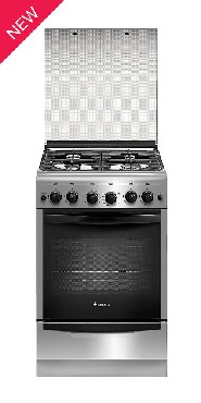 (ШхГхВ) 50x58,5x85 см. Варочная поверхность нержавеющая сталь. 4 газ. горелки. Электророзжиг горелок стола: кнопка розжига на панели. Гриль горелка. Полезный объём духовки 52 л. Таймер: механический. Газ-контроль духовки. Вертел с электроприводом. Направляющие духовки: съемные проволочные. Ящик для посуды и принадлежностей выдвижной. Подсветка духовки одинарная. Стеклянная крышка. Цвет: нержавеющая сталь.