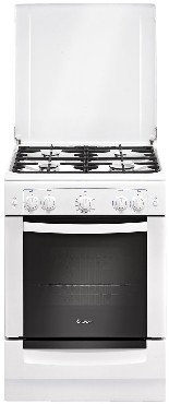 Габаритные размеры: 60х60х85 см. Цвет: белый. Объем духовки 52л. Количество зон приготовления: 4. Варочная поверхность: эмалированная. Фасад: эмалированный. Крышка металлическая. Выдвижной ящик для посуды и принадлежностей. Съемные проволочные направляющие духовки. Газ-контроль духовки. Терморегулятор (термостат). Гриль. Ножки регулировочные. Электророзжиг горелок и духовки, кнопка розжига на панели. Подсветка духовки одинарная.