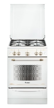 Габаритные размеры ШхГхВ: 60х60х85 см * Цвет: белый. Варочная поверхность: эмалированная. * Полезный объём духовки: 52 л * Выдвижной ящик для посуды и принадлежностей * Съемные проволочные направляющие духовки * Газ-контроль духовки * Терморегулятор (термостат) * Гриль * Ножки регулировочные * Электророзжиг горелок, кнопка розжига на панели * Подсветка духовки одинарная * Электророзжиг духовки, кнопка розжига на панели