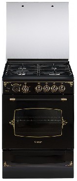 Габаритные размеры ШхГхВ, см: 60x60x85 Цвет: черный Дизайн: ретро Объем духовки, л: 52 Количество зон приготовления: 4 Варочная поверхность: эмалированная Фасад: эмалированный Крышка: стеклянная крышка Вертел с электроприводом Съемные проволочные направляющие духовки Выдвижной ящик для посуды и принадлежностей Таймер аналоговый Газ-контроль горелок стола Терморегулятор (термостат) Газ-контроль духовки Гриль Электророзжиг горелок, встроенный в ручки Ножки регулировочные Электророзжиг духовки, встроенный в ручку Подсветка духовки двойная
