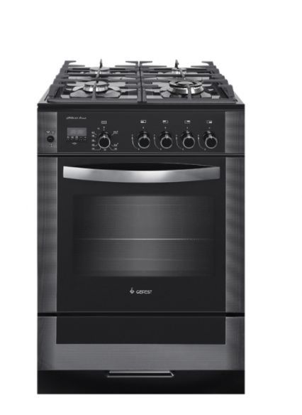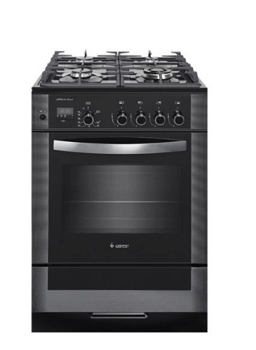 Габаритные размеры ШхГхВ: 60х60х85 см * Цвет: черный. Варочная поверхность: закаленное стекло. * Полезный объём духовки: 52 л * Вертел с электроприводом * Съемные проволочные направляющие духовки * Выдвижной ящик для посуды и принадлежностей * Таймер электронный многофункциональный * Газ-контроль горелок стола * Терморегулятор (термостат) * Газ-контроль духовки * Чугунные решетки горелок стола * Гриль * Шашлычница * Двухзонная горелка * Электророзжиг горелок, встроенный в ручки * Ножки регулировочные * Электророзжиг духовки, встроенный в ручку * Подсветка духовки двойная *