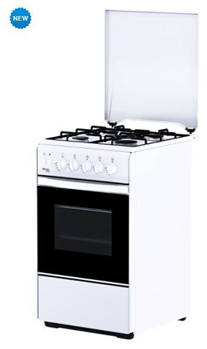 Габаритные размеры, см50 х 60 х 85 * Материал варочной поверхностиэмаль * Электророзжиг горелок стола * Профильная решетка * Материал крышки/щитка металл * Цвет белый * Материал духового шкафа эмаль * Объем духовки 50л * Газ-контроль горелок духовки * Подсветка духовки * Двойное стекло дверцы духовки * хоз. отсек *