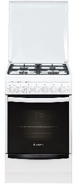 Размеры 50х58,5х85 Цвет: белый Объем духовки, л: 55 Количество зон приготовления: 4 Варочная поверхность: эмалированная Фасад: эмалированный Крышка: металлическая крышк Класс энергоэффективности: A Класс электробезопасности: I Духовка: электрическая Вертел с электроприводом Съемные проволочные направляющие духовки Выдвижной ящик для посуды и принадлежностей Таймер электромеханический Гриль электрический Терморегулятор (термостат) Ножки регулировочные Чугунные решетки горелок стола Подсветка духовки одинарная Электророзжиг горелок, кнопка розжига на панели