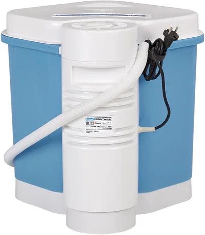 Стиральная машина, малогабаритная, активаторного типа. Максимальный объ м закгрузки до 2кг. Управление механическое. Режим стирки реверсивный, таймер временем стирки до 8 мин. Количество режимов стирки 1. Без отжима.