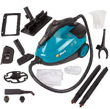 Мощность 2200 Вт, Размер 400x285x260 мм, Напряжение 220 В, Макс давление 4 бар, Частота тока 50 Гц, Постоянная подача пара 45 г/мин, Вес изделия 4,7 кг, Температура пара 143 °С, Емкость бачка 1500 мл, Габариты упаковки 52x31x29 см, Время нагревания 120 с, Время непрерывной работы 10 мин, Регулировка мощности пара, Длина шланга 1,5 м, Длина шнура питания 2 м. Точечное сопло (1 шт) Насадка для мытья окон/дверей (1 шт) Щетка для одежды (1 шт) Малая круглая щетка-насадка с металлической щетиной (1 шт) Малая круглая щетка-насадка с полимерной щетиной (1 шт) Держатель для одежды (1 шт) Держатель шнура питания (1 шт) Махровая салфетка (2 шт) Мерный стакан (1 шт) Трубка удлинительная пластмассовая (2 шт) Насадка-щетка для ковров (1 шт) Щетка для полов (1 шт)