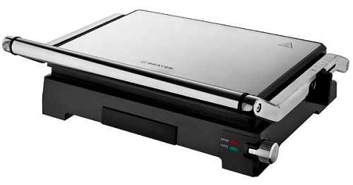 Мощность 2000 Вт Антипригарное покрытие Размер пластин 34*23,5 см Максимальная температура 230° Регулировать расстояния между пластинами по высоте продукта Корпус из высокопрочного пластика, декорирован нержавеющей сталью Открытие крышки 105-180 ° Регулировка температуры Поддон для сбора жира Индикатор готовности и питания Электропитание 220-240 В, 50 Гц