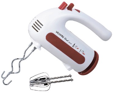Миксер, 300W, 5 скоростей работы, кнопка извлечения насадок, двойной набор насадок: два венчика для взбивания яиц и кремов, две насадки для размешивания тяжелого теста, смешивание жидкостей, замешивание теста, приготовление пюре, взбивание сливок и белков.