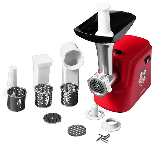 Максимальная мощность1500Вт Количество скоростей1 Функция реверсаДА Защита двигателя от перегрузкиДА Защита от перегреваДА Перфорированный диск для фарша3 Насадка для приготовления домашних колбасДА Насадка для кеббеДА Насадка для шинковкиДА Вес1.8кг Цвет мясорубкикрасный Материал лоткапластик Материал корпусапластик Прорезиненные ножкиДА Длина сетевого шнура1м ТолкательДА Габариты упаковки (ед) ДхШхВ0.28x0.23x0.29м Срок гарантии12 мес.