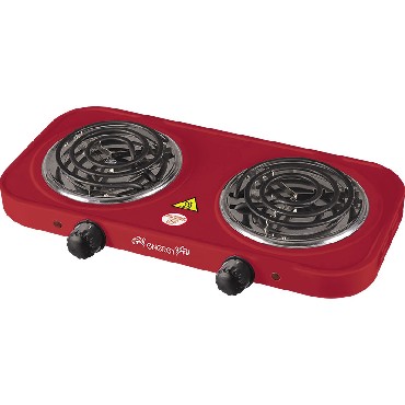 Мощность: 1000 Вт + 1000 Вт. Нагревательный тен. Размер конфорок: 140 мм. 2 световых индикатора работы. Защита от перегрева. Состав: металл, пластик, кабель. Цвет красный.