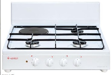 (ВхШхГ)12,7х50х52см. Варочная панель комбинированная. 3 газ. конфорки, 1-электрическая. Тип управления механическое. Панель конфорок эмаль. Вес 9 кг.