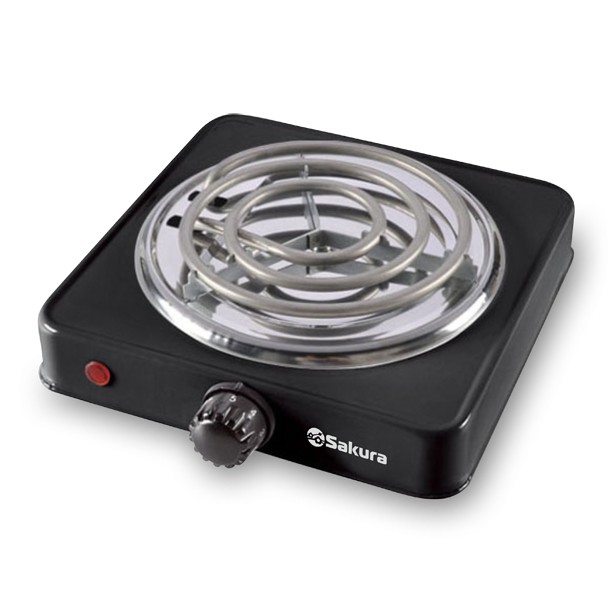 Мощность 1000 Вт, 1 конфорка 145 мм, антипригарное эмалевое покрытие, спиральный нагревательный элемент, регулируемый термостат, индикатор работы, цвет корпуса - черный