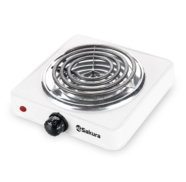 Мощность 1500 Вт, 1 конфорка 145 мм, антипригарное эмалевое покрытие, спиральный нагревательный элемент, регулируемый термостат, индикатор работы, цвет корпуса - белый