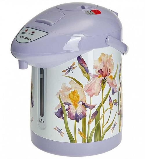 Параметры Объем 2,8 л Номинальная потребляемая мощность 750 Вт Мощность в режиме поддержания температуры 30 Вт Описание Чайник-термос электрический предназначен для нагрева воды и поддержания ее температуры в бытовых и аналогичных условиях Поворот корпуса на базе на на 360° Внутренняя ёмкость из нержавеющей стали Шкала уровня воды Световые индикаторы работы Съёмная крышка для удобства очистки Съёмный шнур электропитания Ручной способ разлива воды Режим поддержания температуры воды Блокировка ручной помпы от случайного нажатия Блокировка включения без воды Автоматическое отключение при недостаточном количестве воды Защита от перегрева (срабатывание при 105?C) Упаковка: цветная коробка