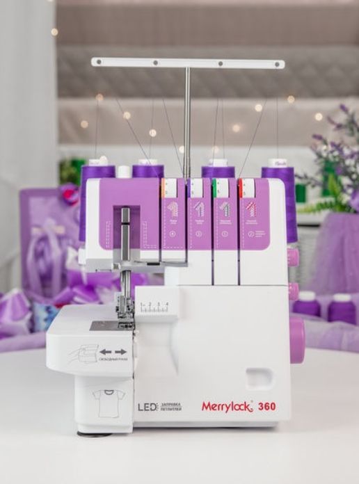 Merrylock (Мерилок) 360 - это простой и удобный современный оверлок, рассчитанный для домашнего использования и гарантирующий отличное качество шитья, равно как легких, так и плотных материалов, от шелка до джинсы.- Современный эффектный дизайн.- Помощник натяжения нити. Возможность оперативно и безошибочно корректировать натяжение, в соответствии с таблицей выполняемых строчек.- Базовый комплект наиболее важных краеобметочных операций.- Свободный рукав. Вы сможете просто шить манжеты и рукава круглой формы.- Регулятор давления прижимной лапки.- Ящик для обрезков.- Регулятор дифференциальной подачи ткани.- Регулятор ширины обрезки.- Двойная колоритная LED подсветка для освещения области шитья и области петлителя.- Удобная ручка для переноски.