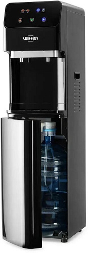 Напольный кулер с нижней загрузкой, компрессорным охлаждением и встроенным газатором. Два сенсорных крана. Мощность нагрева 800 Вт (9 л/ч), охлаждения 90 Вт (4 л/ч). Баки: горячей 1.75 л, холодной 1.5 л. Защита от детей, индикатор пустой бутылки. Для 20 пользователей. Цвет черный. Размеры: 280x1130x415 мм.