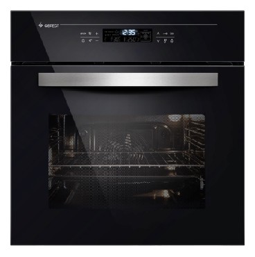 Габариты (ВхШхГ) 59,5х59,8х56,5см. Объем 52л. Таймер сенсорный. Конвекция. Вертел с электрoприводом. Электрогриль. Турбо-гриль. Шашлычница. Проволочные направляющие. Телескопич. полки. Сенсор. управл-е. Черный стекл. фасад. Доп. функции: разморозка, поддерж.тепла.
