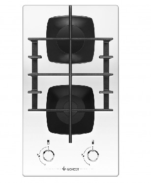 Цвет: белый. * Варочная поверхность: стеклянная. * Габаритные размеры ШхГхВ: 30х53х10 см * Газ-контроль горелок стола * Чугунные решетки горелок стола * Фиксированное положение «малое пламя» * Электророзжиг горелок, встроенный в ручки