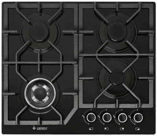 Размеры монтажного проема, ШхГ, см: 55,4 х 48,6; Ширина, см: 60; Глубина, см 52,5; Высота, см: 10; Вес: 13,5 кг; Цвет: Черный; Всего конфорок на варочной панели: 4; Тип подключения: Газовый; Материал рабочей поверхности: Стекло; Решетка: Чугун; Механическое управление; Электроподжиг автоматический; Поворотные переключатели; Газ-контроль конфорок; Тип подключения: Газовый; Газ-контроль горелок стола; Электропджиг горелок стола встроен в ручки