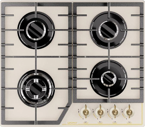 Размеры монтажного проема, ШхГ, см 55,4 х 48,6. Ширина, см 60. Глубина, см 52,5. Высота, см 10. Цвет модели Кремовый. Дизайн Ретро. Материал варочной поверхности Стекло. Материал решеток варочной поверхности Чугун. Двухзонная горелка варочной поверхности. Газ-контроль горелок стола. Электророзжиг горелок стола Розжиг встроен в ручки. Управление конфорками стола Механическое. "Фиксированное положение ""малое пламя"".