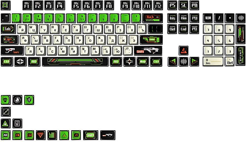 119 клавиш, материал: ПБТ+ПС, кейкапы пудинг, печать на 5 сторонах с помощью термической сублимации, совместим с клавиатурами с 61/68/75/87/98/104/108 клавиш