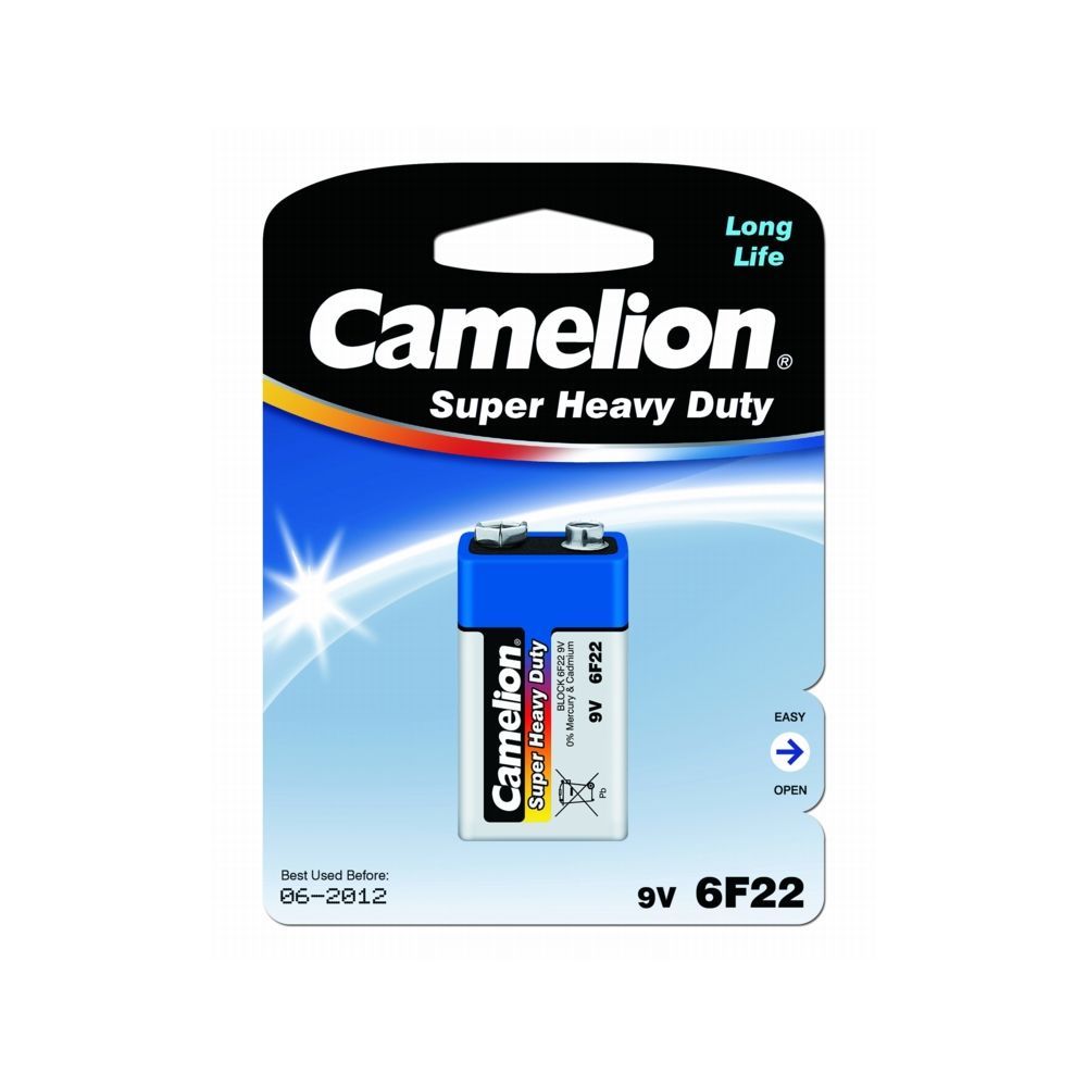 Батарейка Camelion 6F22-BP1B, напряжение 9В, емкость 450мА*ч, кол-во в упаковке 1 шт., размер упаковки 84x114x18 мм, использовать при температуре от -18 до + 55 °C, хранить в сухом помещении при температуре от +15 до +25°C. Срок хранения 3 года.