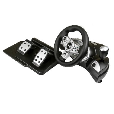 Джойстик-руль, с эффектом вибрации, интерфейс USB, трехпозиционный рычаг переключения скоростей. На рулевом колесе: 2 подрулевых лепестка для переключения скоростей, аналоговый стик, 4-кнопочная крестовина управления, крупная кнопка в центре, 2 кнопки Select и Start, четырехкнопочная крестовина в левой части рулевого блока, регулятор чувствительности в правой части рулевого блока.