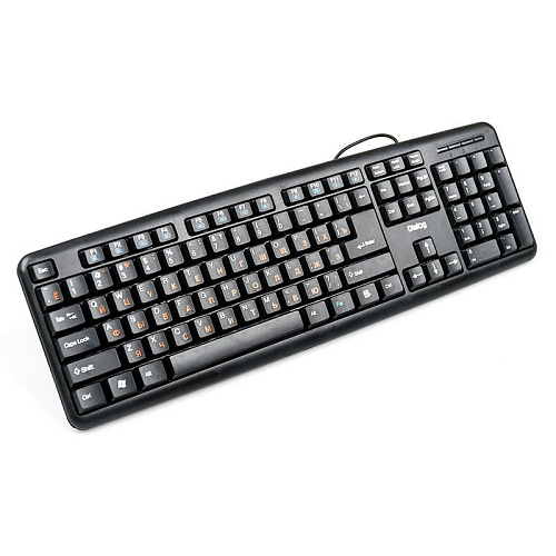 Корпус Черный корпус, черные клавиши, тёмно-оранжевая кириллица, белая латиница, голубой цвет значков мультимедийных функций на F-клавишах