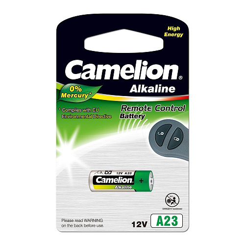 Батарейка Camelion LR23A BL-1 Mercury Free (A23-BP1, батарейка,12В), напряжение 12В, емкость 55мА*ч, кол-во в упаковке 1 шт., размер упаковки 56x92x10 мм, использовать при температуре от -18 до + 55 °C, хранить в сухом помещении при температуре от +15 до +25°C. Срок хранения 3 года.