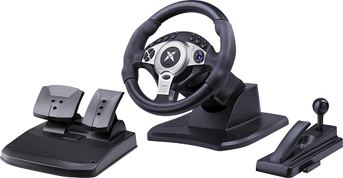 Проводной игровой руль с эффектом вибрации, удобными педалями и рычагом переключения передач. Пользователь может настраивать угол поворота рулевого колеса в диапазоне от от 180° до 900°. Поддерживаемые платформы: PlayStation® 3, PlayStation® 4, Android 5.0 и выше, XBOX 360, Nintendo Switch, XBOX One, Xbox Series X/S , ПК (Dinput и Xinput).