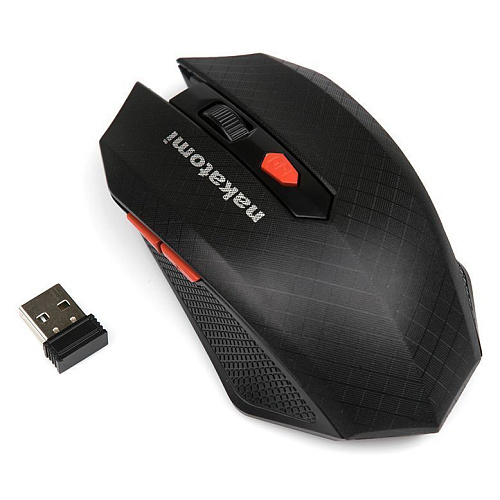 Беспроводная оптическая мышь. Дизайн для правой руки. Разрешение - 1600dpi. Динамически изменяемое разрешение циклически кнопкой "DPI" (800/1600 dpi). Количество кнопок - 6. Интерфейс подключения - радиоинтерфейс 2.4 гГц. Дальность работы - до 10 м. Питание - 2хААА. Материал корпуса - пластик. Размеры (В*Ш*Г) - 120*67*37 мм. Вес - 63г.