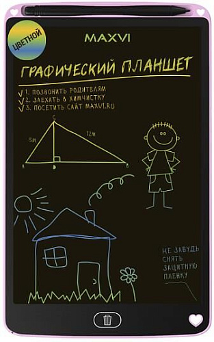 LCD планшет для заметок и рисования, 10,5", Цветной дисплей, Угол обзора 160°, Батарея CR2016, пластиковый корпус, цвет розовый