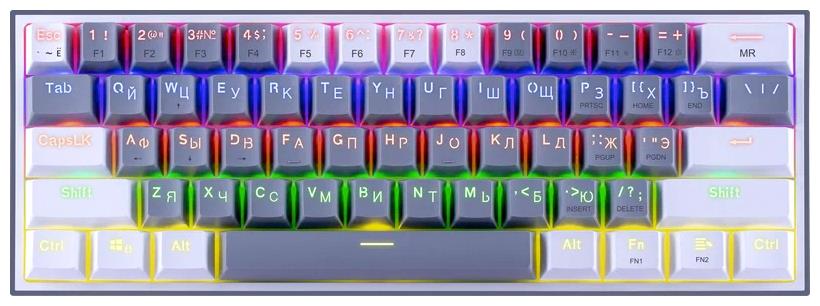 REDRAGON (70675) Fizz Радужн,61 клав,тих,серо-бел. Клавиатура