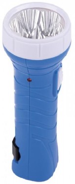 Аккумуляторный светодиодный фонарь с прямой зарядкой, источник света: 5 LED, отражатель: зеркальный, материал корпуса: пластик/металл.