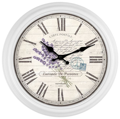 Форма — круг. Материал корпуса — пластик. Цвет корпуса — белый. Циферблат — римские цифры. Защита циферблата — силикатное стекло. Вывод времени — стрелочный. Механизм — кварцевый с плавным ходом. Батарейка АА (в комплект не входит). Гарантийный срок — 12 мес.
