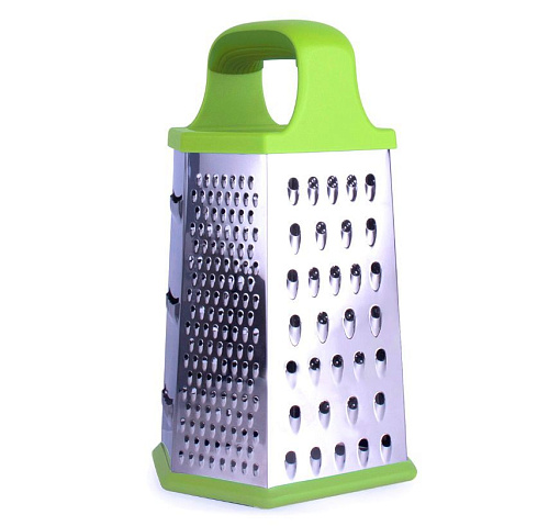 Универсальная Терка Люси 6 в 1 Толщина стенок 0,25 мм Размер: 11.5*14*23cm Материал: нержавеющая сталь, пластик, силикон • 6 типов лезвий: крупная терка, средняя терка, мелкая терка, шинковка, фигурная шинковка, шредер • Большая площадь режущей п