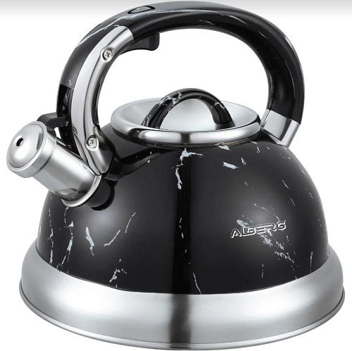 Объем: 3 л Свисток металл, с курковым механизмом открывания Нержавеющая сталь 0.5 мм Внешнее термостойкое покрытие «Бордовый мрамор» Фиксированная ручка 3-х слойное термоаккумулирующее капсулированное индукционное дно Подходит для всех видов плит, включая индукционные Вес чайника: 1000 г