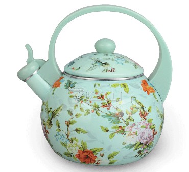 Эмалированный чайник со свистком Объем: 2,5л Носик со свистком и защитным кольцом Удобная ручка, не нагревается 3-х слойное внутреннее и внешнее эмалированое покрытие Неповсторимость дизайна Пригодность для посудомоечной машины Неповторимость узора