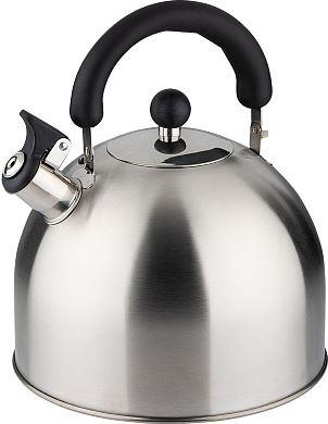 Чайник GRANDE, объем 5 л, из нерж стали со свистком, с бакелитовой ручкой, матовый Материал: нержавеющая сталь/ бакелит. Толщина стали: 0,4 мм. Дно: одинарное. Объем: 5 л. Полировка корпуса: внутри и снаружи - матовая. Подходит для всех типов плит. Упаков