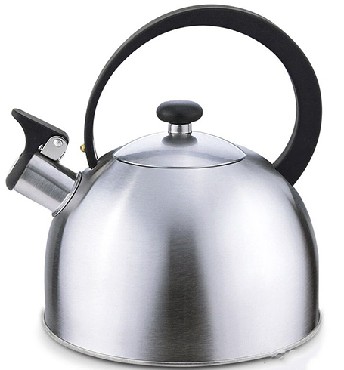 Чайник из нержавеющей стали № 201 со свистком с крышкой, с ручкой из нейлона, матовый внутри/матовый - снаружи, дно - одинарное, подходит для всех типов плит, толщина стали - 0.3-0,35 мм, литраж - 2,5 литра, упаковка - цветная коробка. Модель - "Opera" Материалы - нержавеющая сталь, нейлон. Не рекомендуется мыть в посудомоечной машине.