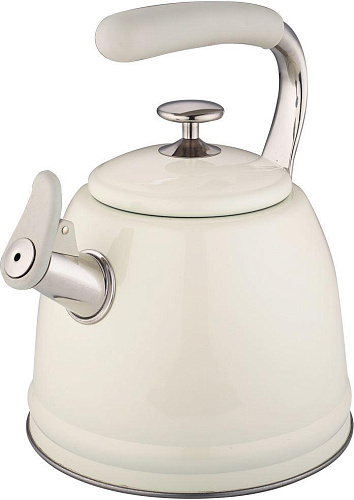 Чайник со свистком, 3,0 л, нержавеющая сталь, ИНДУКЦИОННОЕ КАПСУЛИРОВАННОЕ ДНО, курковый механизм, внешнее покрытие – антипригарное цветное покрытие, устойчивое к высоким температурам, фиксированная комбинированная ручка с покрытием soft-touch.