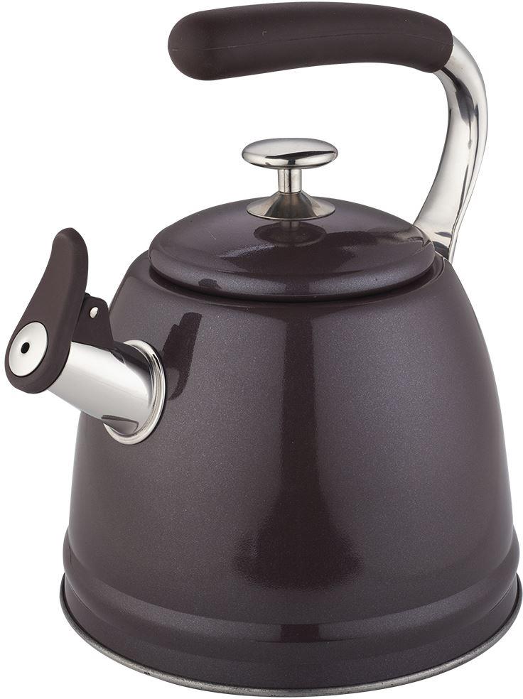 Чайник со свистком, 3,0 л, нержавеющая сталь, ИНДУКЦИОННОЕ КАПСУЛИРОВАННОЕ ДНО, курковый механизм, внешнее покрытие – антипригарное цветное покрытие, устойчивое к высоким температурам, фиксированная комбинированная ручка с покрытием soft-touch.
