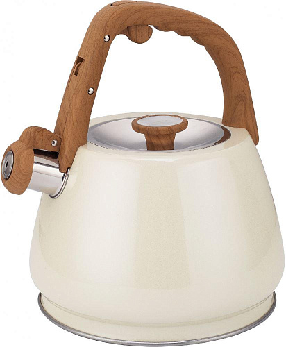 Чайник со свистком, 3,0 л, нержавеющая сталь, ИНДУКЦИОННОЕ КАПСУЛИРОВАННОЕ ДНО, курковый механизм, внешнее покрытие – антипригарное цветное покрытие, устойчивое к высоким температурам, фиксированная ручка с покрытием soft-touch «под дерево».