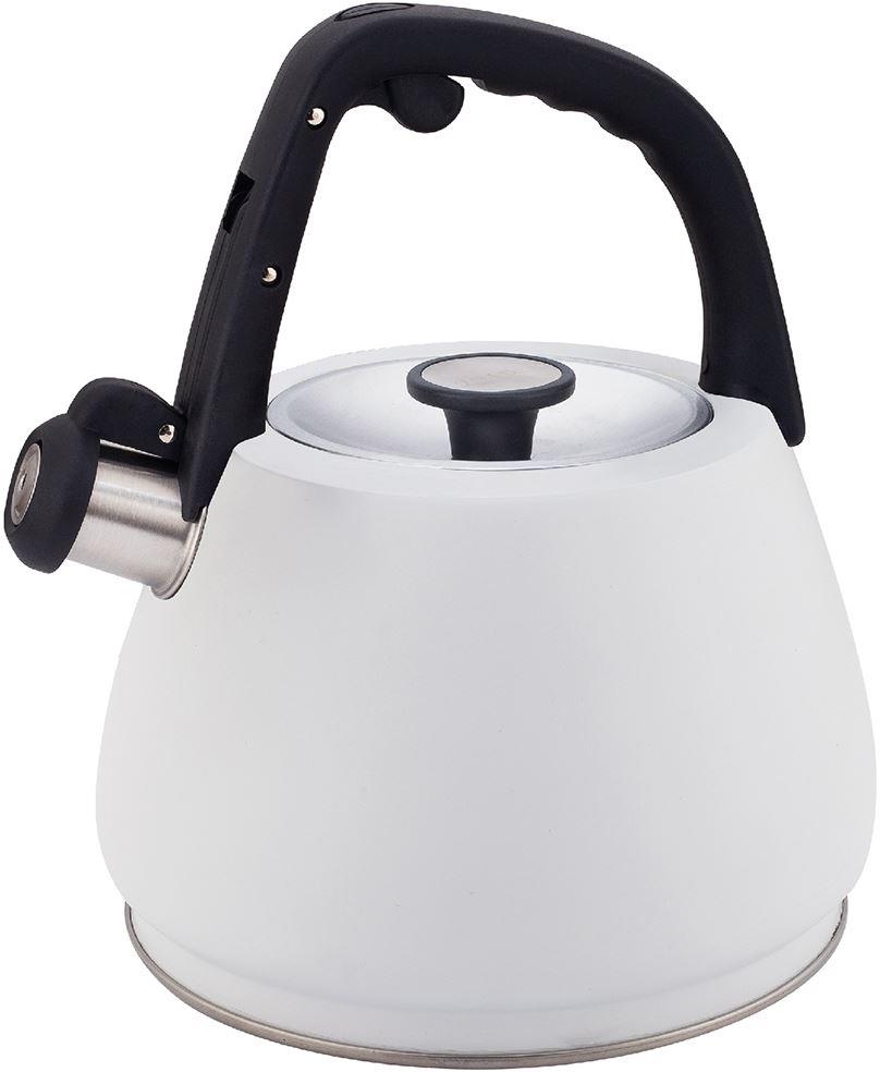 Чайник со свистком, 3,0 л, нержавеющая сталь, ИНДУКЦИОННОЕ КАПСУЛИРОВАННОЕ ДНО, курковый механизм, внешнее покрытие – антипригарное цветное покрытие, устойчивое к высоким температурам, фиксированная бакелитовая ручка.