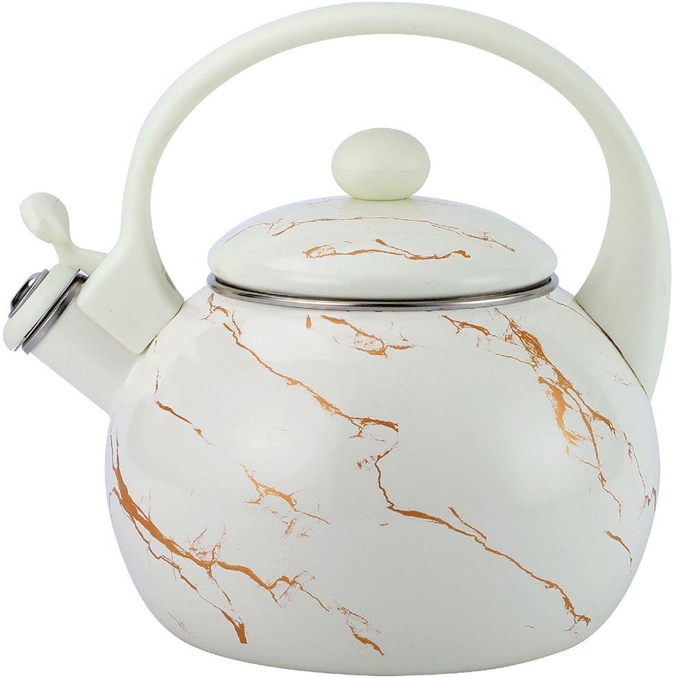 2,5 л, Чайник со свистком 2.5 л, эмалированная сталь, бакелитовая ручка, наружное покрытие - эмаль с рисунком. Подходит для индукции. Подарочная упаковка.